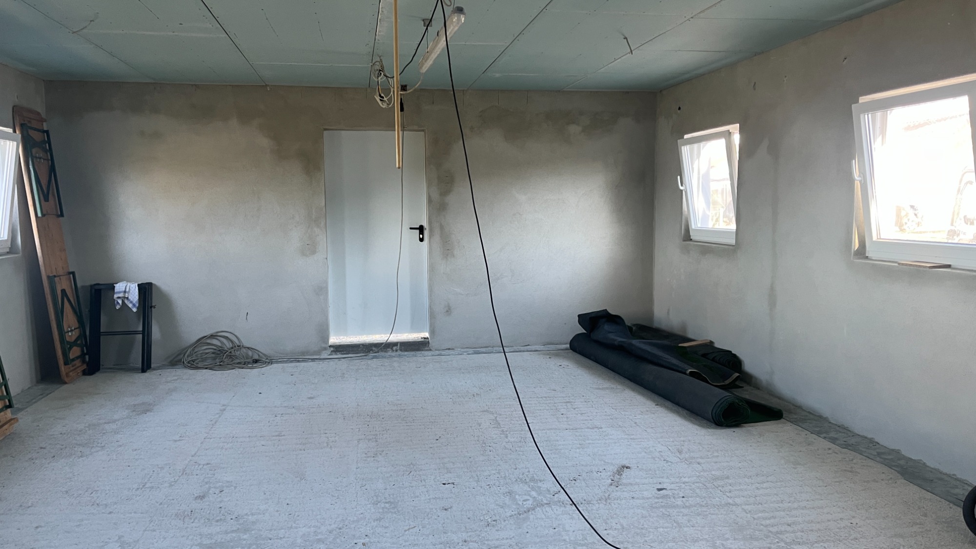 Nachdem das Dach bereits fertiggestellt werden konnte, kann nun mit dem Innenausbau angefangen werden. Und wieder mal bei strahlendem Sonnenschein.