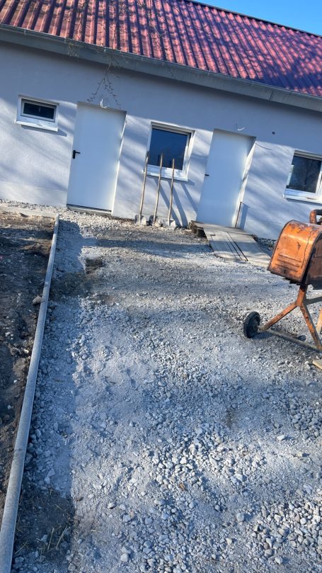 Nachdem nun alles aufgeschüttet wurde, alle Rohre verlegt wurde und das Grundstück schön ordenlicj abgerüttel wurde konnte Julius Merkel am 16.08.2024 den Beton für die Bodenplatte einlassen